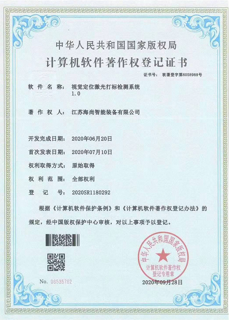 視覺定位激光打標(biāo)檢測(cè)系統(tǒng)著作權(quán)證書